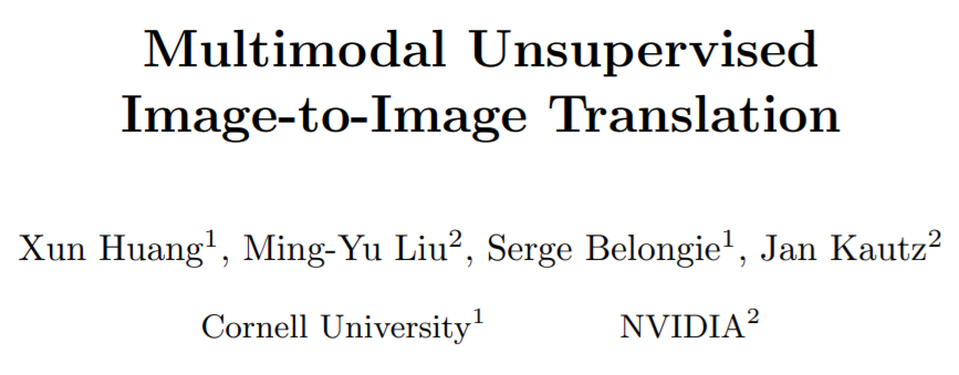 无监督图像到图像转换是计算机视觉领域一个重要而富有挑战的问题:给定源域(source domain)中的一张图像,需要在没有任何配对图像数据的情况下,学习出目标域(target domain)中其对应图像的条件分布。虽然条件分布是多模态的,但此前方法都引入了过于简化的假设,而将其作为一个确定性的一对一映射,因此无法在特定的源域图像中生成富有多样性的输出结果。