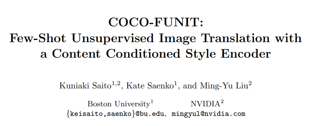 论文地址:https://nvlabs.github.io/COCO-FUNIT/paper.pdf