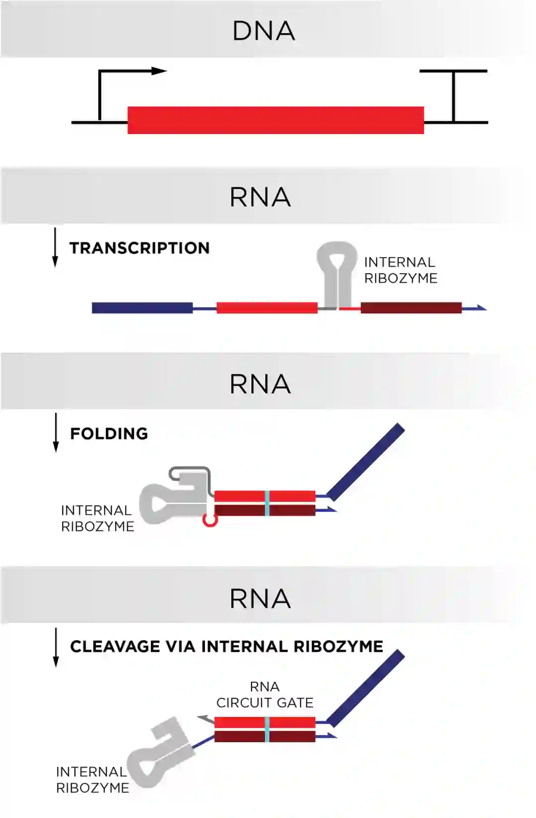 实际上,RNA 可再生的优势源于一种称为转录的细胞过程,即细胞会将 DNA 作为模板连续产生 RNA。如果细胞基因组中的 DNA 为生物计算机中的电路元件编码,那么细胞将不断产生计算机元件。