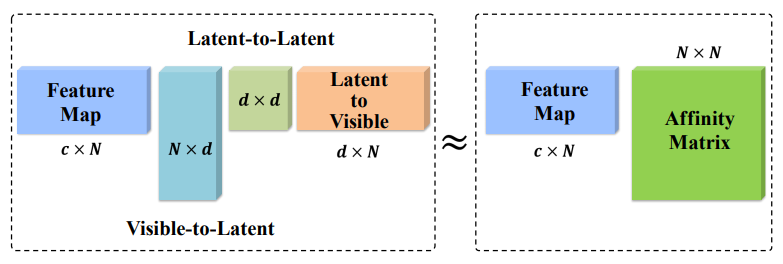 上述四文皆包含如下三步:1.像素到语义节点映射 2.语义节点间推理 3.节点向像素反映射。其中,step 2的意义尚未有对比实验验证,目前来看,step 1 & 3 构成的对像素特征的低秩重建发挥了关键作用。关于如何映射和反映射,又有了 APCNet[14] 和笔者的 EMANet[15] 等相关工作。
