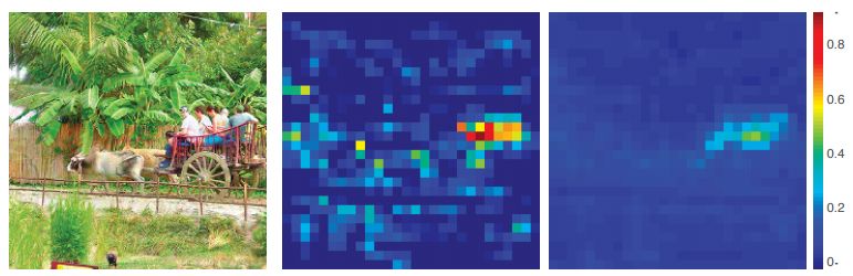 a. 原图 b. Feature map c. Feature map after Nonlocal