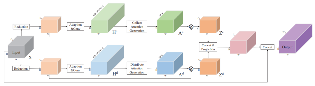 ,只和 query 及相对位置相关。此外,PSANet 包含两路 attention ,相当于 transformer 中的两个 head 。两路分别起到 collect 和 distribute 的作用。