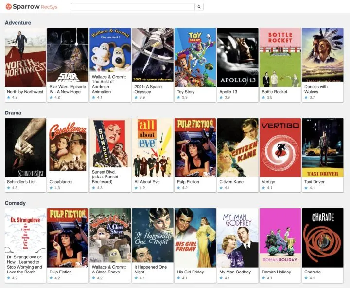 SparrowRecSys 的首页
