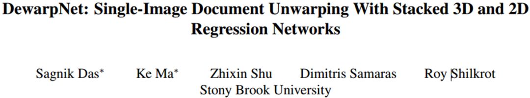 DewarpNet: Single-Image Document Unwarping With Stacked 3Dand 2D Regression Networks论文、论文补充材料、代码、DewarpNetdemo、Doc3D数据集下载地址:https://sagniklp.github.io/dewarpnet-webpage/
