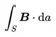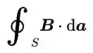 到了这里,我们要表示通过一个曲面的磁通量应该已经轻车熟路了。磁通量是B·a,那么通过一个曲面S的磁通量给它套一个积分符号就行了。于是,通过曲面S磁通量可以写成下面这样: