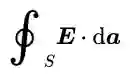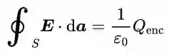 这个拉长的大S符号就是积分符号,它就是我们上面说的微积分思想的代表。它的右下角那个S代表曲面S,也就是说我们这里是把这个曲面S切割成无穷小块,然后对每一块都求它的通量E·da,然后把通量累积起来。至于这个大S中间的那个圆圈就代表这是一个闭合曲面。