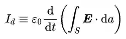 ε0是真空中的介电常数,把这个常数和电通量变化的快慢乘起来就会得到一个跟电流的单位相同的量,它就被称为位移电流,如下图: