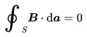 通过闭合曲面的磁通量(B·a是磁通量,套个曲面的积分符号就表示曲面的磁通量)我们上面已经说了,恒为0无非就是在等号的右边加个0,所以高斯磁场定律的数学表达式就是这样的: