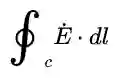 电场的线积分是什么意思呢?因为我们发现这个感生电场是一个环状电场,它在每一个点的方向都不一样。但是,我们依然可以发动微积分的思想:这个电场在大范围内(比如上面的整个圆环)方向是不一样的,但是,如果在圆环里取一个非常小的段dl,电场E就可以看做是一个恒定的了,这时候E·dl就是有意义的了。然后把这个环上所有部分的E·dl都累加起来,也就是沿着这个圆环逐段把E·dl累加起来,这就是对电场求线积分。而这个线积分就是电场环流,用符号表示就是这样: