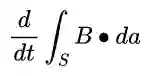 因此,我们可以用这个量的变化dy和给定的时间dt的比值dy/dt来衡量量这个量y变化的快慢。所以,我们现在要衡量磁通量变化的快慢,那就只需要把磁通量的表达式替换掉上面的y就行了,那么通过曲面S的磁通量变化的快慢就可以这样表示: