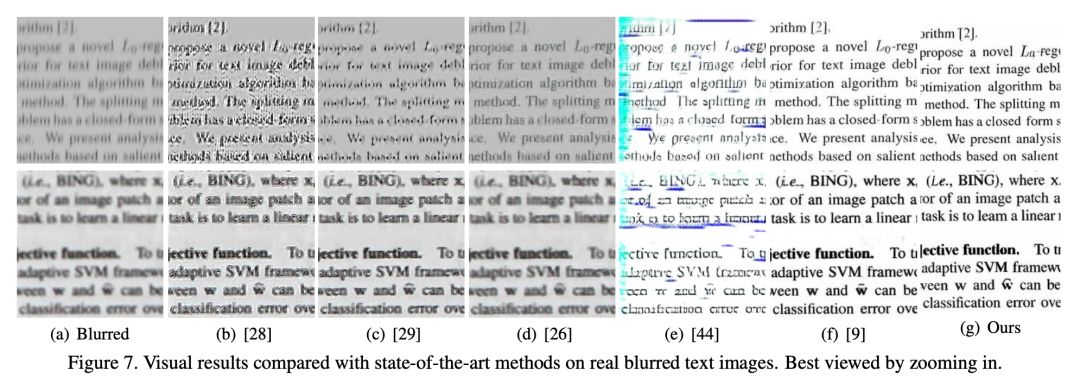 不仅仅在人脸图像去模糊上,在文本去模糊上也展示了不错的实验效果: