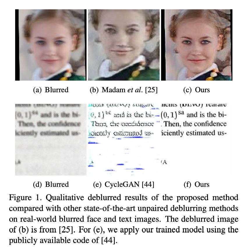 近年来深度神经网络和 GAN 的巨大成功,已经提出了一些基于 CNN 的方法用于图像去模糊,例如 Nimisha 在 ECCV 2018 发表的 Unsupervised Class-Specific Deblurring [1] 是一种基于 GAN 的无监督图像去模糊方法,在模型上增加了重复损失和多尺度梯度损失。虽然它们在合成数据集上取得了良好的性能,但它们对一些真实模糊图像的结果并不令人满意。