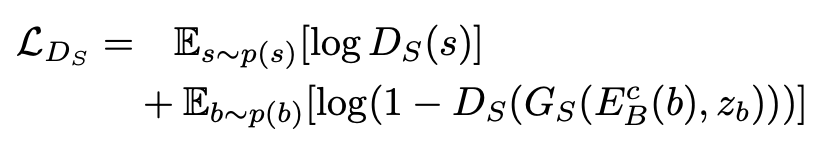 我们先把模型中的组间介绍清楚,由于模型的循环一致性设计,网络的左右是基本对称的,我们对左侧组间交代下。s 代表清晰的真实图像,b 代表模糊的真实图像,是清晰图像的内容编码器(可以理解为图像颜色、纹理、像素的编码器),对应的