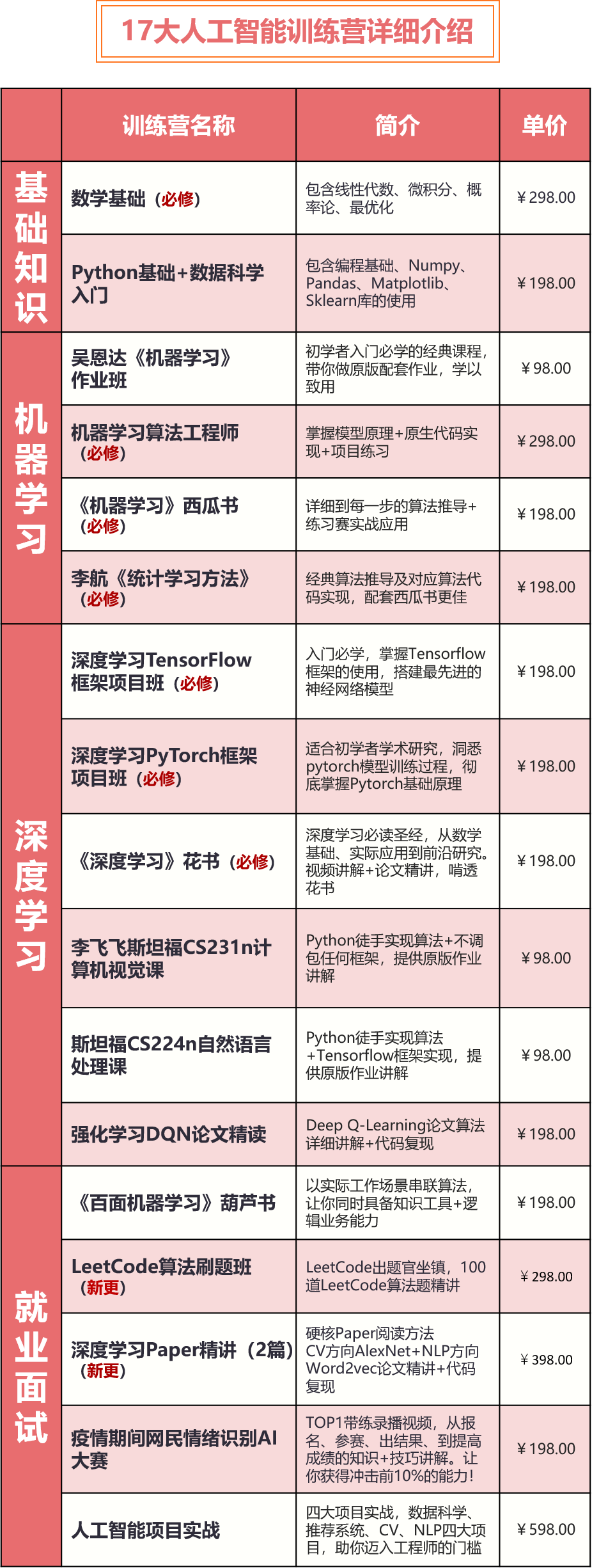 深度之眼为了提高大家的学习效率,精心制作了算法理论+实战结合最紧密的“机器学习”西瓜书训练营!