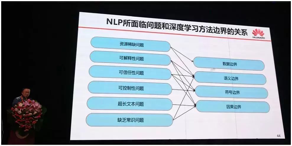 刘群将其答案总结为:自然语言处理中的资源稀缺问题、可解释性问题、可信任性问题、可控制性问题、超长文本问题、缺乏常识问题,并将其与深度学习方法边界之间的关系联系起来。