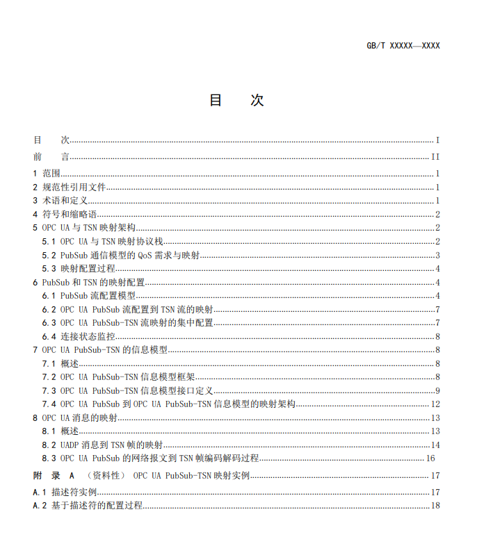 本文件规定了时间敏感网络与OPC统一架构(OPC UA)融合的信息模型映射,包括OPC UA发布/订阅(PubSub)通信模型到TSN的映射、OPC UA发布/订阅的消息映射和传输协议映射、OPC UA实时通信需求到时间敏感网络配置接口的映射,给出了时间敏感网络与OPC UA融合的信息模型。本文件适用于时间敏感网络与OPC统一架构融合系统的开发和设计。