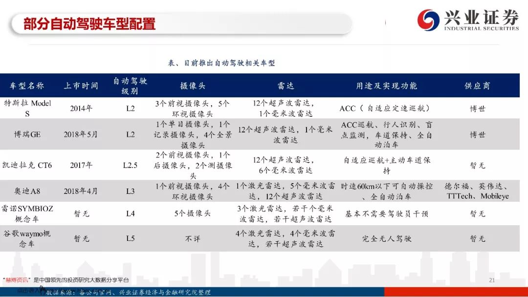 近年来,汽车电子正在朝着电动化、网联化、智能化、共享化方向发展,尤其是大幅精进的自动驾驶技术备受关注。本文汇总了自动驾驶相机、雷达、高精地图等产业链情况,从中可以看出汽车无人驾驶行业蓝图。如今,汽车无人驾驶行业蓝图已现,其产业链上下游已经出现支撑公司,并在逐渐走向成熟。