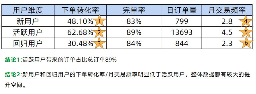 第二个是新用户跟回归用户的下单转化率跟月交易频次上做提升。