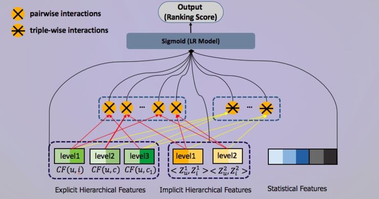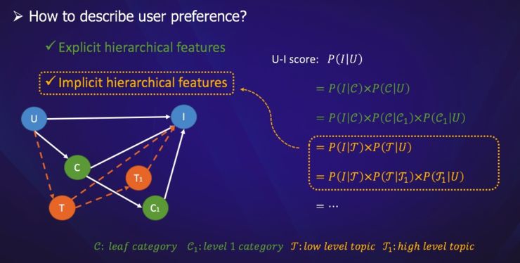 基于用户兴趣主题的层次偏好:沙滩裤,太阳眼镜->防晒霜(沙滩旅行)->运动鞋(户外旅行)。这里的沙滩旅行和户外旅行都是用户兴趣层面的表达。