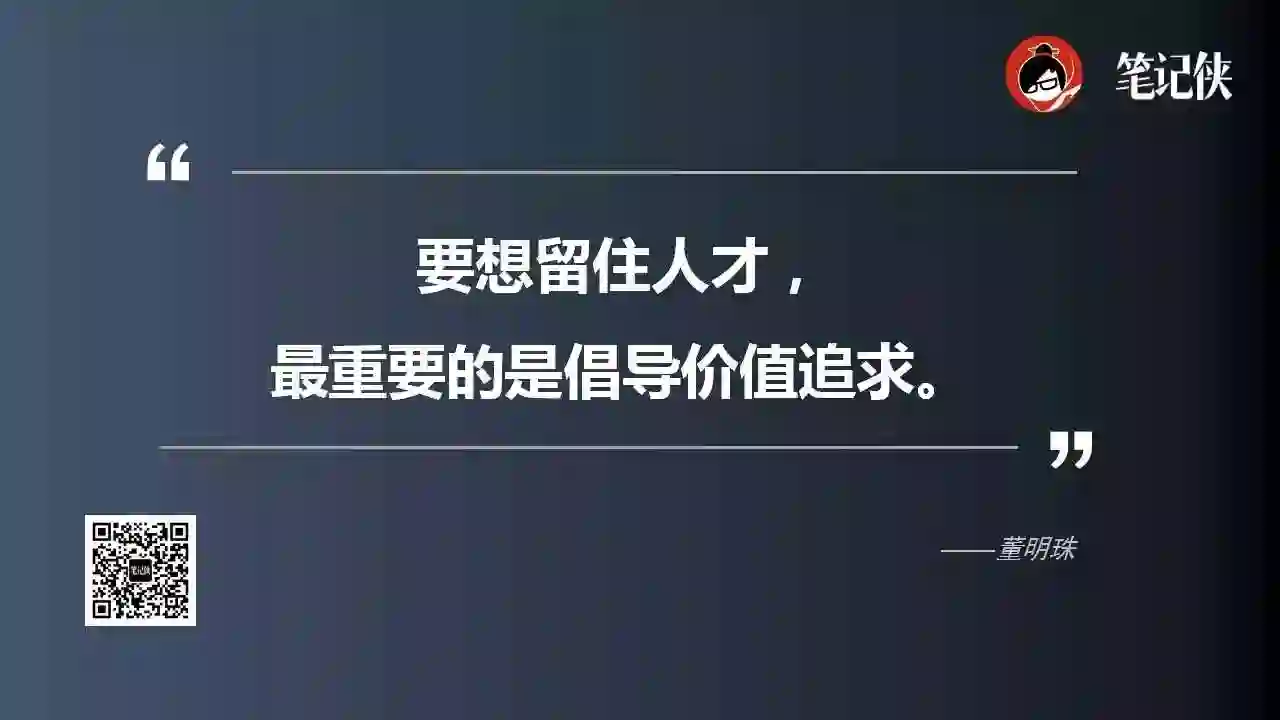 我认为,最重要的是倡导价值追求。我们要让每个员工明白,他们在工作上的奉献与企业、国家是连在一起的,过分追求名利和金钱的人离开反倒是件好事。