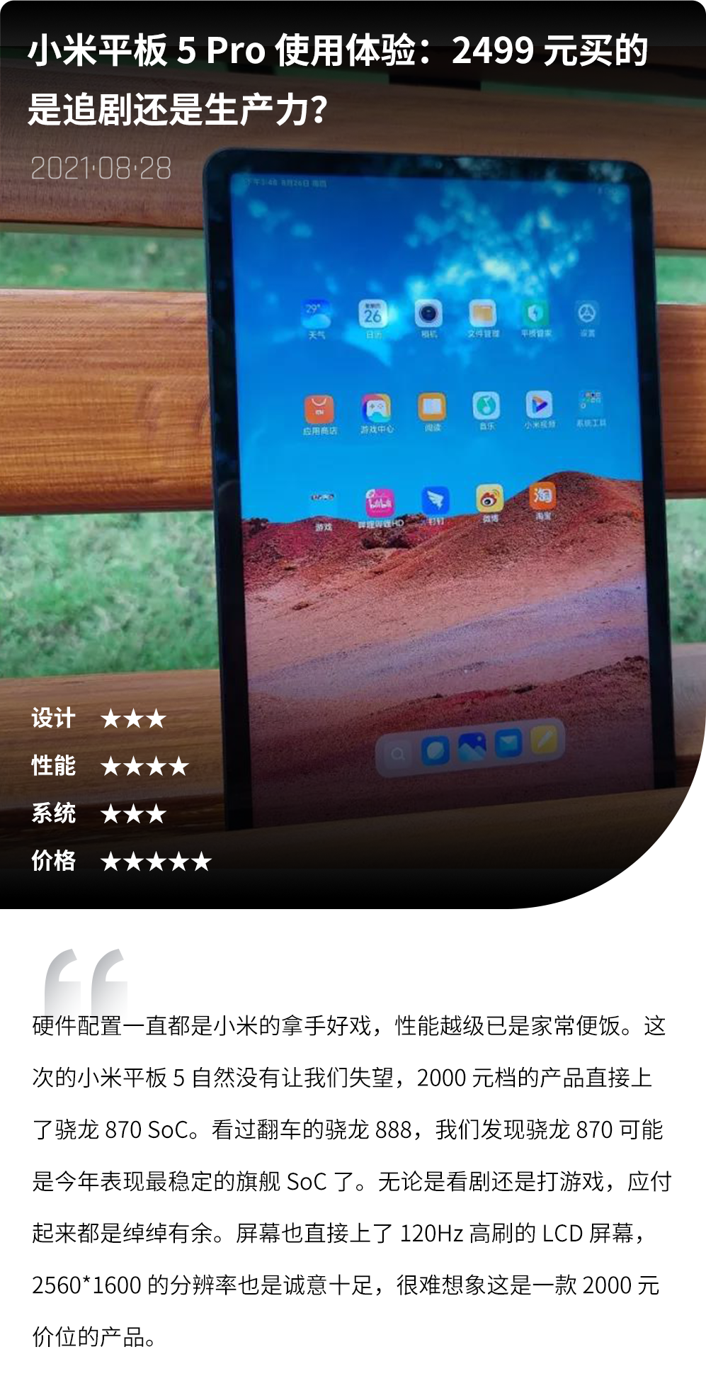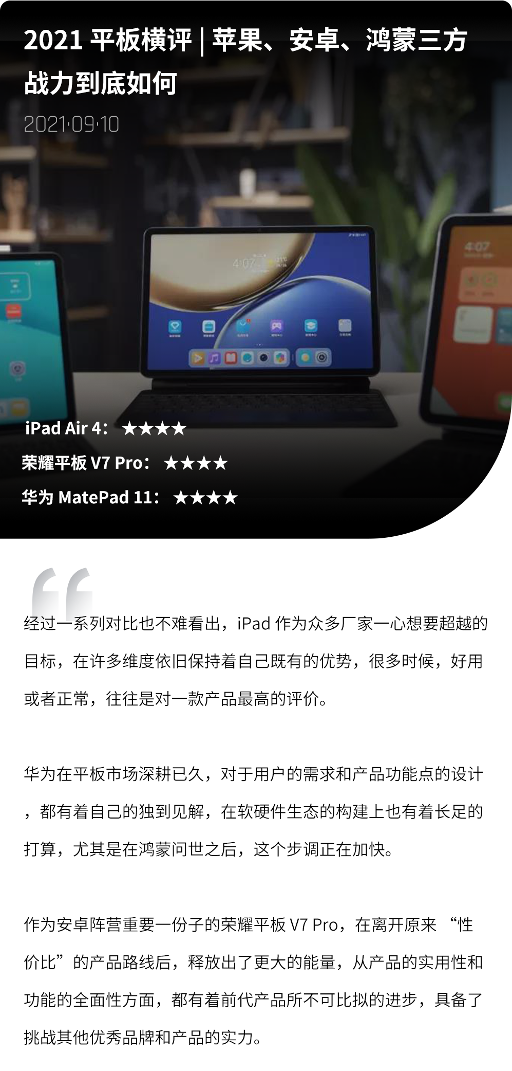 小 Z 筛选了几条观点鲜明的网友评论,大家的评论很有趣,也挺专业的,其实目前平板电脑市场逐渐趋于饱和,平板电脑的特点很明显,缺点更明显。大部分用户购买平板电脑只是那些“凑合一下得了”的需求:不想用电视看极致画质的视频,那就用平板凑合一下;不想用电脑办公,那就用平板凑合一下;没必要买游戏机和游戏电脑,再用平板凑合一下。