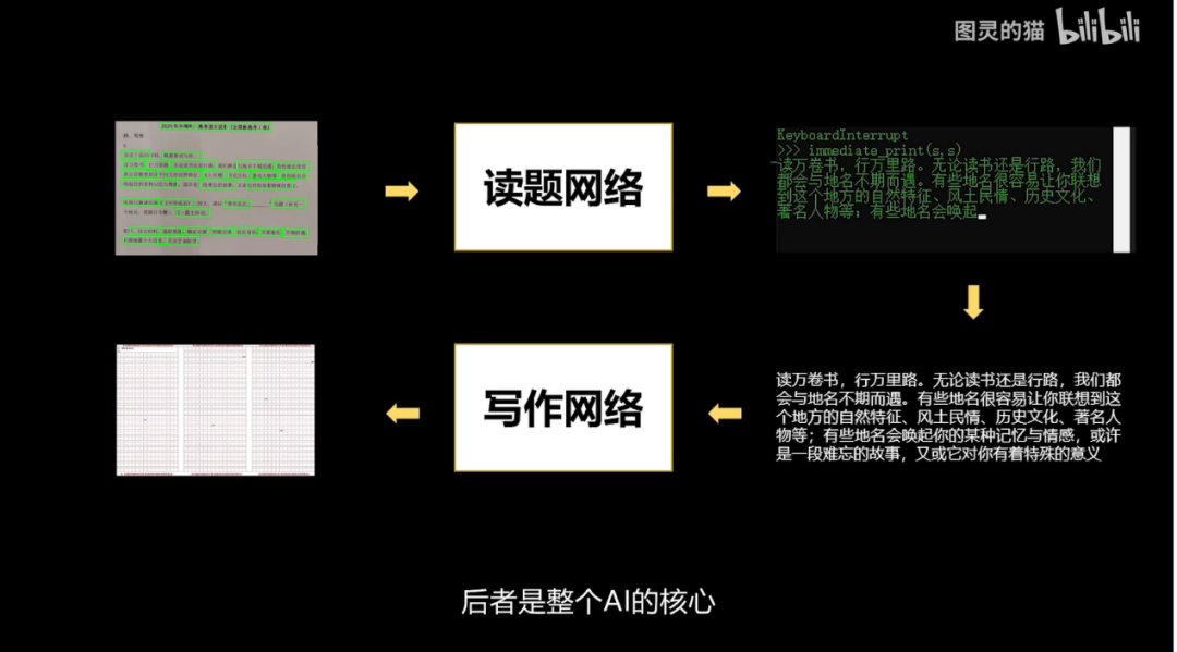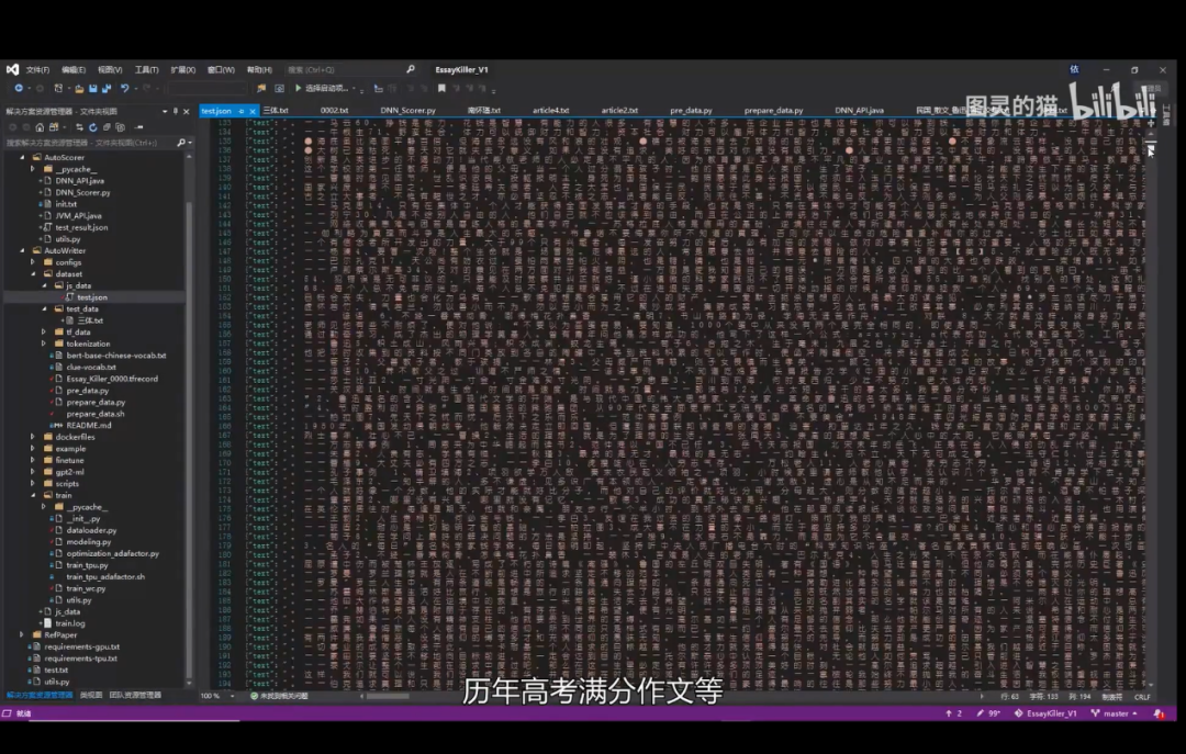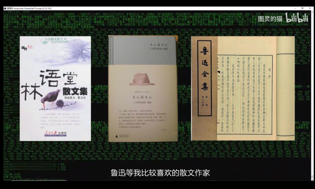 通过 UP 主说起来看似很简单,其实非大神一操作就跪拜的四大网络搭建过程后,EssayKiller 就算是出生了。此时的它还是一张白纸,需要投喂大量数据养成。俗话说,读万卷书 AI 才能写出好作文。 接下来就是 EssayKiller 不是很漫长的学习过程了。UP 给它投喂了大量的优质散文、议论文,比如近现代散文集、历年高考作文等,然后让它自我训练并进行写作能力的提升。出于 UP 主的个人喜好,还为它增加了林语堂、木心、鲁迅等散文作家,也加入了一些现代作家,比如王小波、史铁生、王硕等。 最后通过整理来的 360 万张图像数据、2 亿条中文预训练语料以及上千篇微调文章,EssayKiller 带着 UP 主满满的爱开始了它的“漫漫”求学之路。