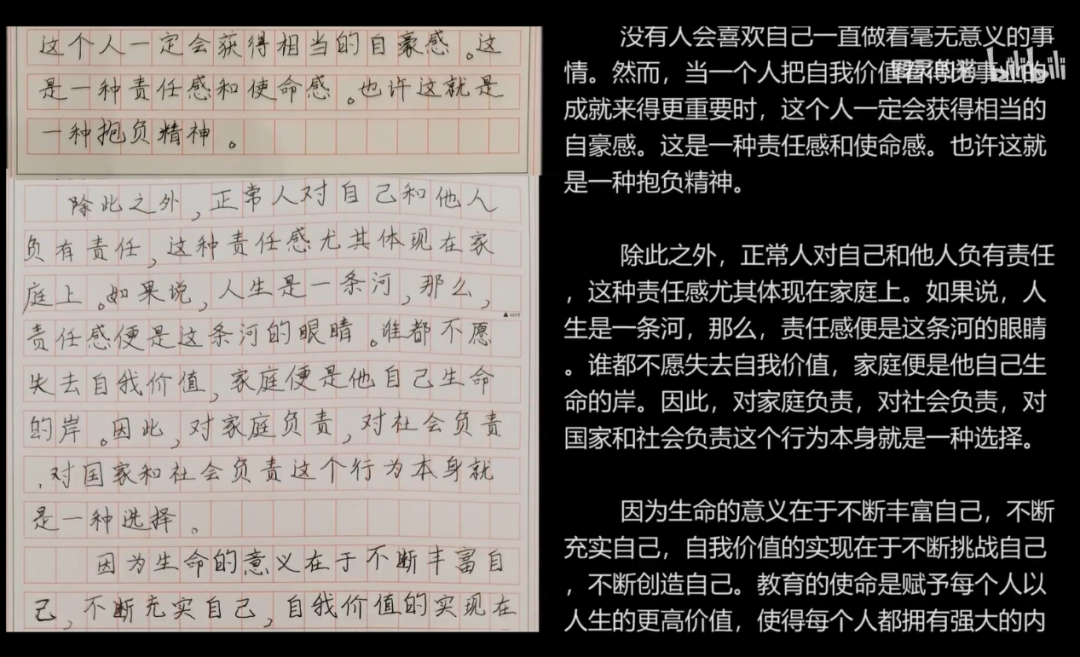 这和训练学生写高考作文的过程是如出一辙,这也是近年来很多满分作文的套路,比如《生活在树上》。