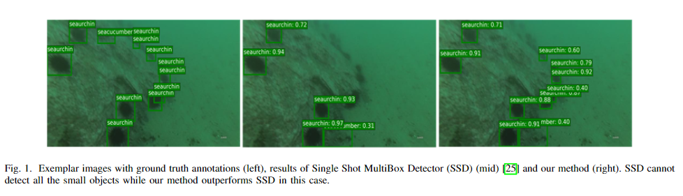 基于深度学习的物体检测系统已在各种应用中表现出较好的性能,但在处理水下目标检测方面仍然感到不足,主要有原因是:可用的水下目标检测数据集稀少,实际应用中的水下场景的图像杂乱无章,并且水下环境中的目标物体通常很小,而当前基于深度学习的目标检测器通常无法有效地检测小物体,或者对小目标物体的检测性能较差。同时,在水下场景中,与波长有关的吸收和散射问题大大降低了水下图像的质量,从而导致了可见度损失,弱对比度和颜色变化等问题。