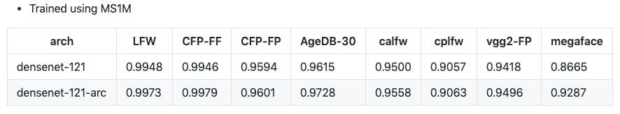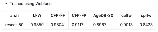 支持的人脸基准数据集: Megaface (FaceScrub), IJB-A, LFW