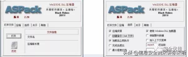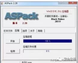 常见到的压缩壳有"UPX"、"北斗程序压缩"、"ASPack"等,加密壳有"PE-Armor"、"ASProtect"等等。