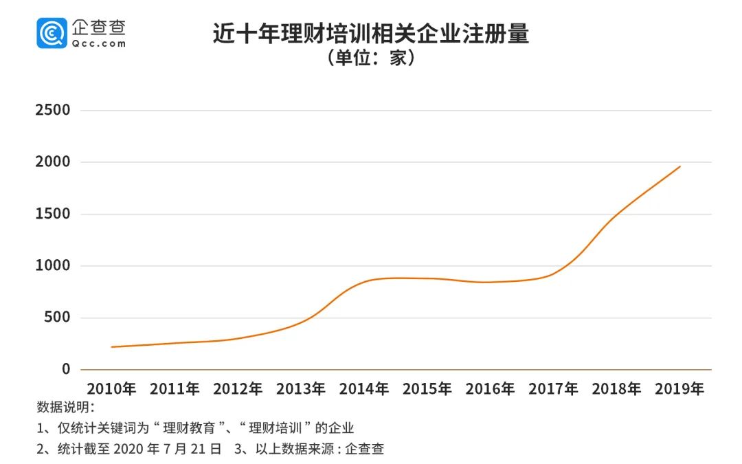 2019年新增近2000家理财教育企业,较10年前增长800%