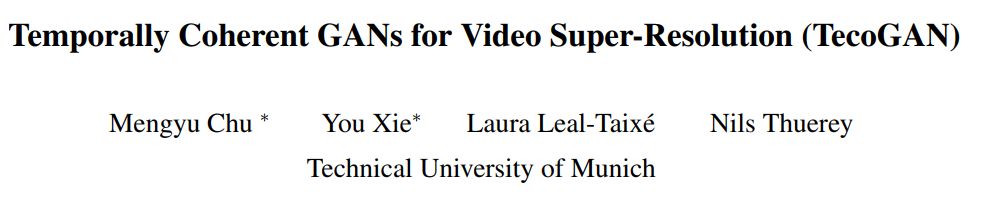 「Temporally Coherent GANs for Video Super-Resolution (TecoGAN)」的论文中,来自慕尼黑工业大学的研究人员提出了一种用于实现视频超分辨率的新型 GAN——TecoGAN。