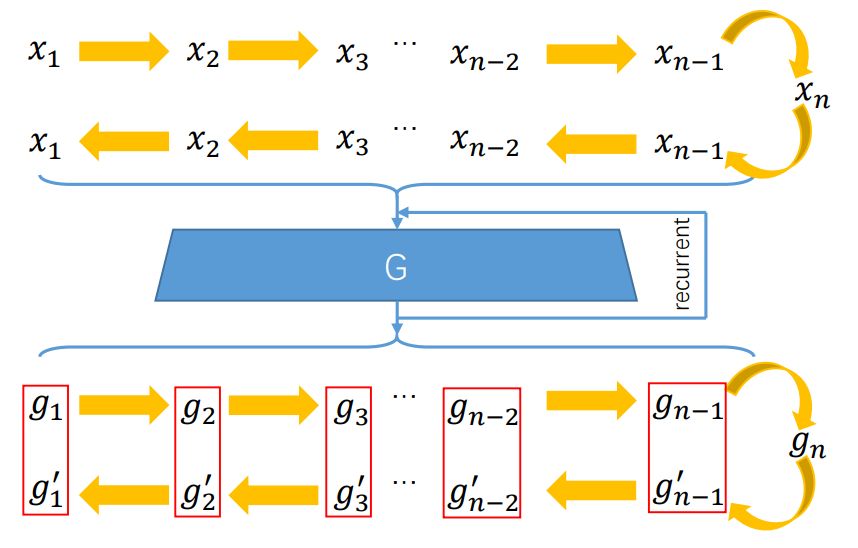 该研究使用具备 ping-pong ordering 的扩展序列来训练网络,如图 5 所示。即最终附加了逆转版本,该版本将两个「leg」的生成输出保持一致。PP 损失的公式如下所示: