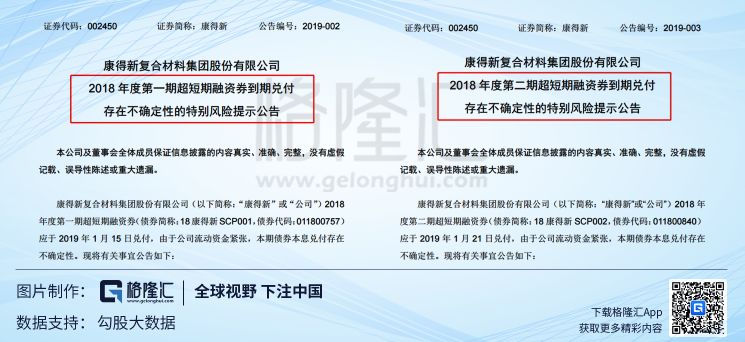 今年1月14日,康得新复合材料集团股份有限公司(下称“康得新股份”,002450.SZ)接连发布两份到期债务兑付存在不确定性的公告,涉及违约的资金为15亿元。