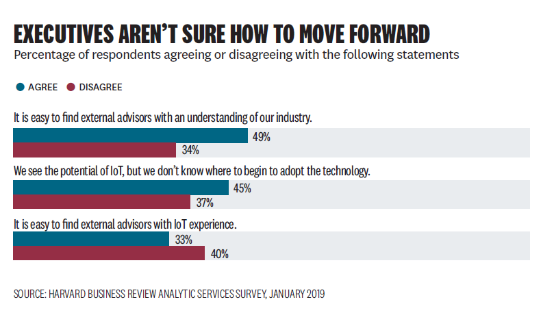 在这份试图覆盖全球工业企业C-suites高管的调研中,741名高管中有74%认为物联网将在两年内助力他们在市场中建立竞争优势。然而障碍也显而易见,90%的高管认为物联网项目的投资回报率ROI难以计算;还有不少高管表示公司中缺乏懂行的专家,缺乏应对物联网项目复杂性和挑战的信心。