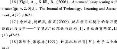 主观题批阅的典型方法是文本相似度计算,基本过程是利用预设的分词词典对学习者的答案和标准答案进行分词,然后通过词频统计,利用向量空间模型计算两个文本的相似度(刘晓华等,2006;张均胜等,2014)。如自动文本标注( Automated Text Marker)平台引入分词词典和同义词词典,实现了对答案的语法和语义分析,在自动批阅领域取得了一定效果(曹洋等,2014)。又如托福的作文自动评分系统(e—rater)对文章进行分词和词频分析,实践检验显示该方式在一定程度上可以较好地判断学生的用词能力,但文本的语义信息还较难把握(Yigal et al.,2014;王颖等,2012)。
