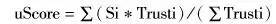 其中,Trusti为用户i的信任度,Si为第i个批阅者的批阅分数。