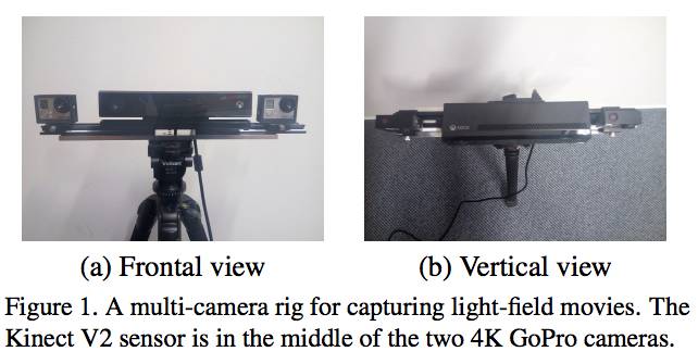 本文介绍了一种新的光场电影捕捉设备,该设备配备一个Kinect V2和两个 4K GoPro相机。
