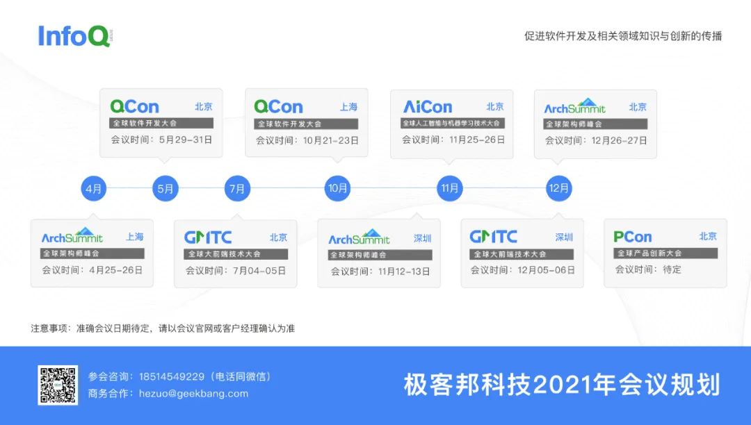 另外除 AICon 北京,今年我们还将在深圳、北京等地举办 2 场技术大会,方向覆盖前端、架构等方向,购票及咨询请联系票务小姐姐:13269078023(微信同电话)