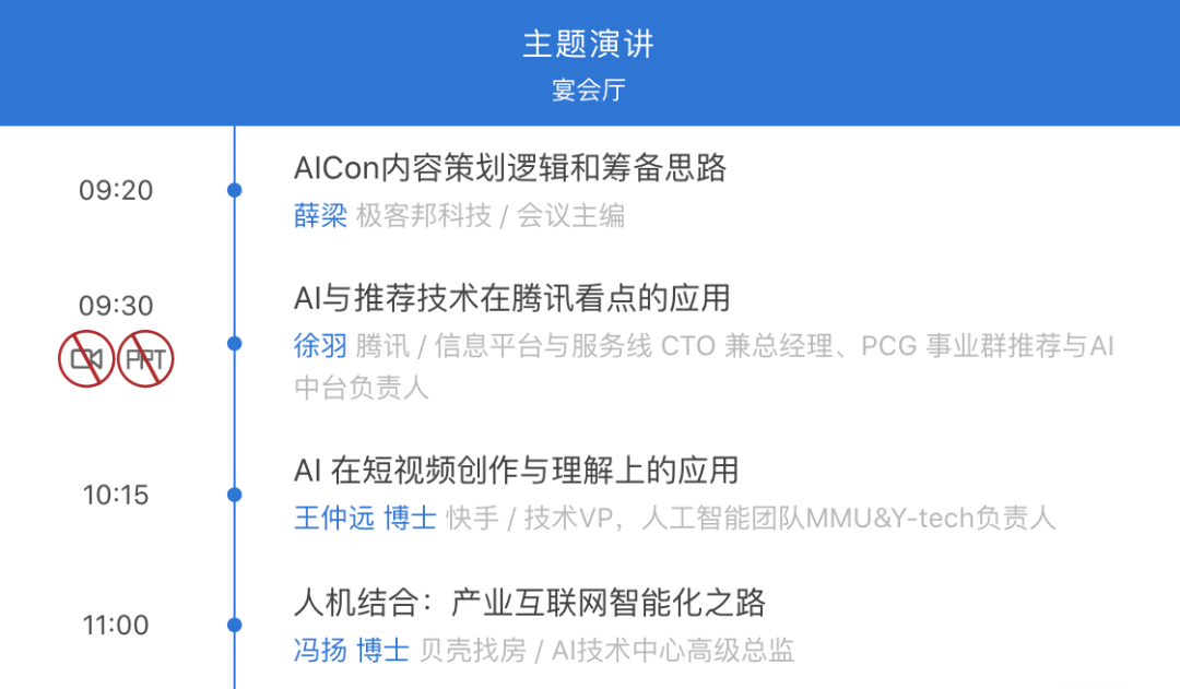 演讲嘉宾除了来自阿里、腾讯、华为、字节、百度、美团、小米、爱奇艺、快手、京东等头部大厂之外,还有第四范式、图森未来、Hulu、科大讯飞、明略科技、爱数智慧、索信达控股、商汤科技、纽劢科技、出门问问、贝壳找房、Pony.ai、西山居、微众银行、BIGO、OPPO、红棉小冰、优必选科技、eBay...... 覆盖各行各业。讲师们将从实践出发,依据热点话题,分享人工智能前沿技术创新和落地实践。