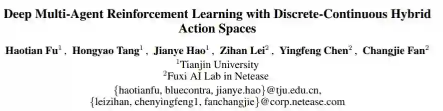 IJCAI 2019 将于 8 月 10-16 号在中国澳门举办,本次会议一共收到 4752 篇提交论文,最终接收 850 篇,接收率降低到 17.9%。本文介绍了天津大学郝建业课题组与网易伏羲人工智能实验室合作的 IJCAI 2019 论文《Deep Multi-Agent Reinforcement Learning with Discrete-Continuous Hybrid Action Spaces》。该论文主要提出了两种深度强化学习架构,旨在解决离散—连续混合动作空间下的多智能体学习问题。