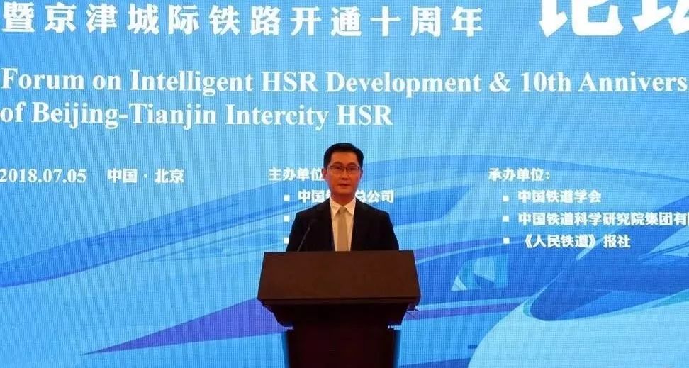 关于这次的主题“智能高铁”,马化腾发表了题为《数字技术助力智能高铁发展》的演讲。他认为,未来智能高铁的发展,需要汇聚“三流”、融合“两网”、打造“一体”。