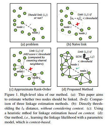 这种方法不需要依赖于一个全局的阈值如(a)或者人为设定的局部阈值如(c),可以让算法自己来观察当前的context,从而确定结果,这会使得linkage更加robust。