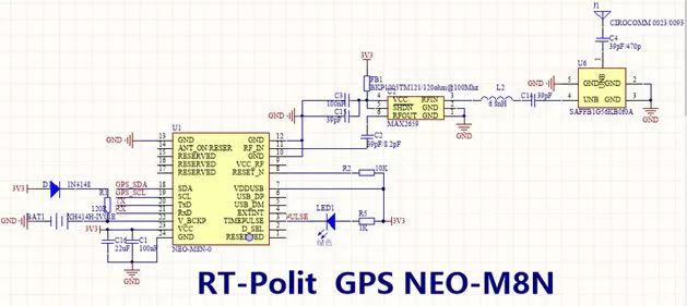 GPS模块是一个独立的单元,通过串口接到主控的串口5上,上图中的原理图是我早期时候设计的基于Ublox M8N的GPS模块,这里刚好用到。