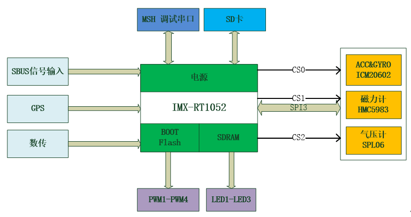 各个传感器接到IMX-RT1052的SPI3上,进行分时操作。