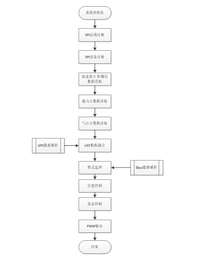 整个AutoQuad源码是一个较大的系统,我这里抽丝剥茧,将其中的主脉络流程贴出来: