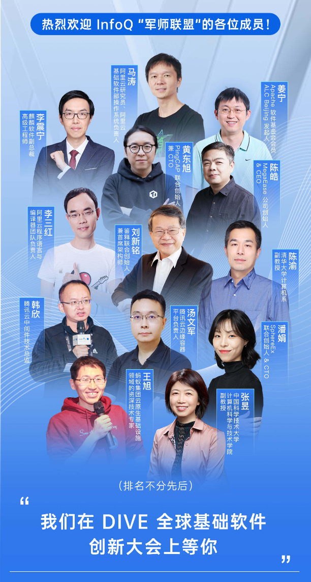 面对行业的种种未知,InfoQ 将在 2022 年 3 月举办首届 DIVE 全球基础软件创新大会,邀请了数十位不同领域的专家学者,一起深入探讨基础软件领域的方方面面。