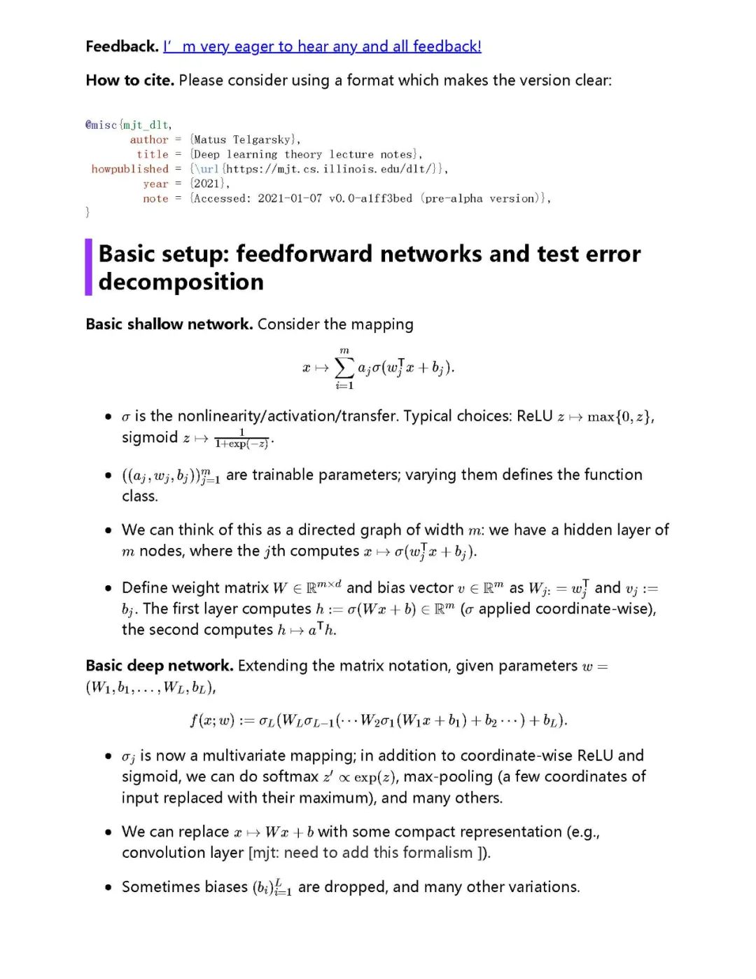 深度学习的研究在许多机器学习任务上产生了最先进的结果。大多数的进步都是由直觉和通过试验和错误进行的大规模探索推动的。因此,目前理论落后于实践。ML社区并不完全理解为什么最好的方法是有效的。来自UIUC Matus Telgarsky教授撰写了关于深度学习理论笔记,值得关注。