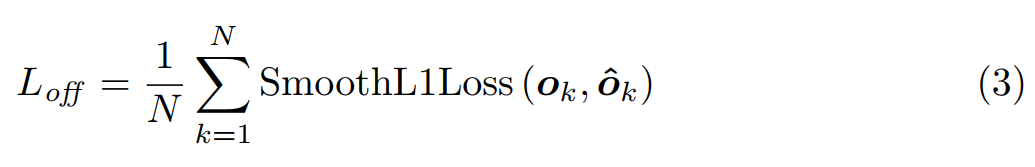 由于下采样,模型生成的热点图相比输入图像分辨率低。论文提出偏移的损失函数,用于微调corner和ground-truth偏移。