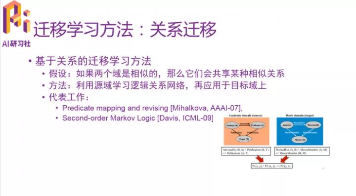 最后是基于关系的迁移学习方法,可以由师生关系类比上下级关系,也可以从生物病毒的传播规律类比计算机病毒的传播。